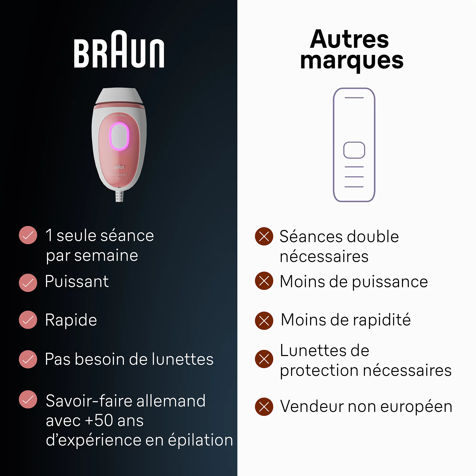 technologie SkinPro (capteur de teint SensoAdapt), impulsions lumineuses continues et à grande vitesse de l’IPL |