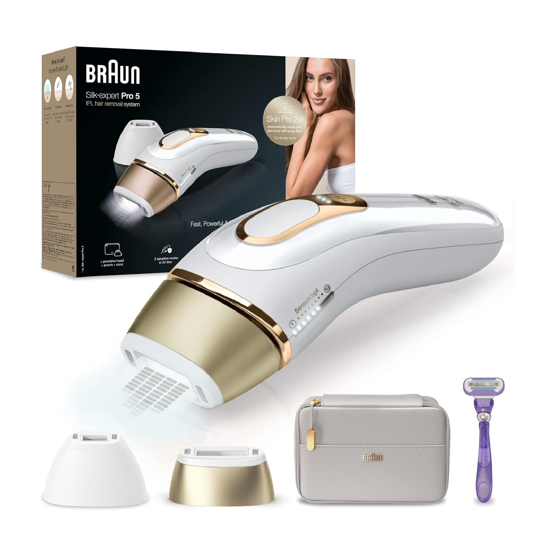 Braun Silk Expert Pro 5, épilateur à lumière pulsée, avec pochette, tête de précision et rasoir Venus, alternative à l’épilation au laser, PL5157