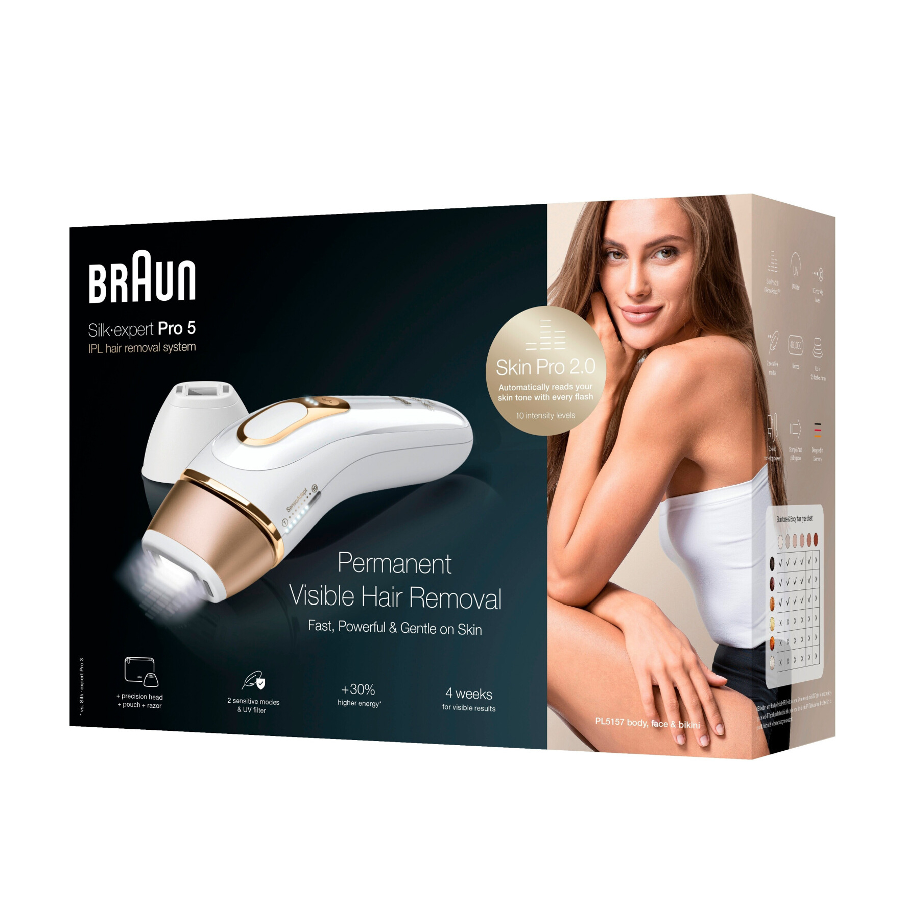 ✅ تقنية Skin Pro 2.0 (SensoAdapt™) – تعدّل كثافة الوميض تلقائيًا وفقًا للون بشرتكِ لضمان أمان وفعالية مثالية.