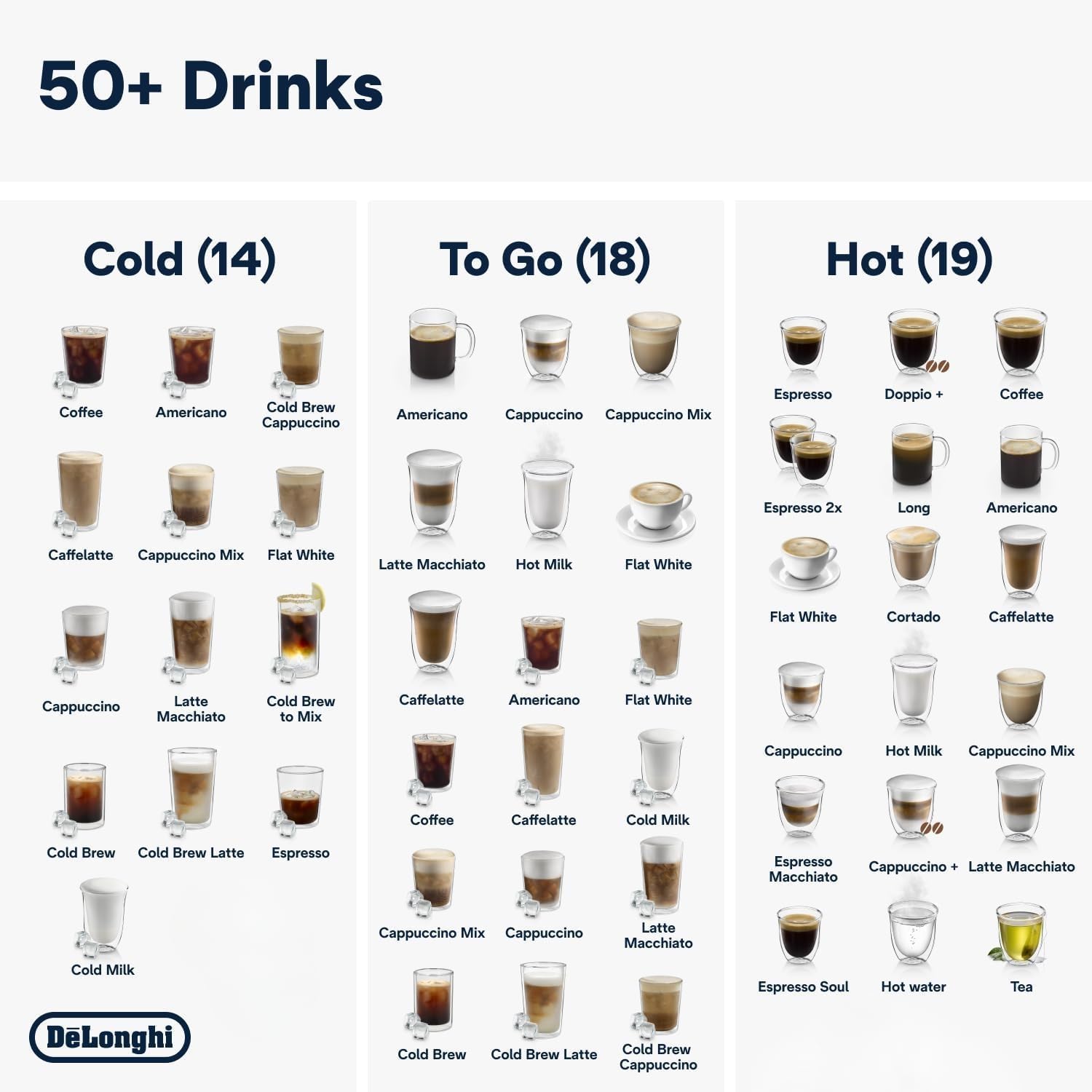 Profitez de vos boissons préférées,prêtes en un seul geste. Faites votre choix parmi une large sélection d’expressos et de boissons à base de lait,dont 13 prêtes en une seule pression de touche.