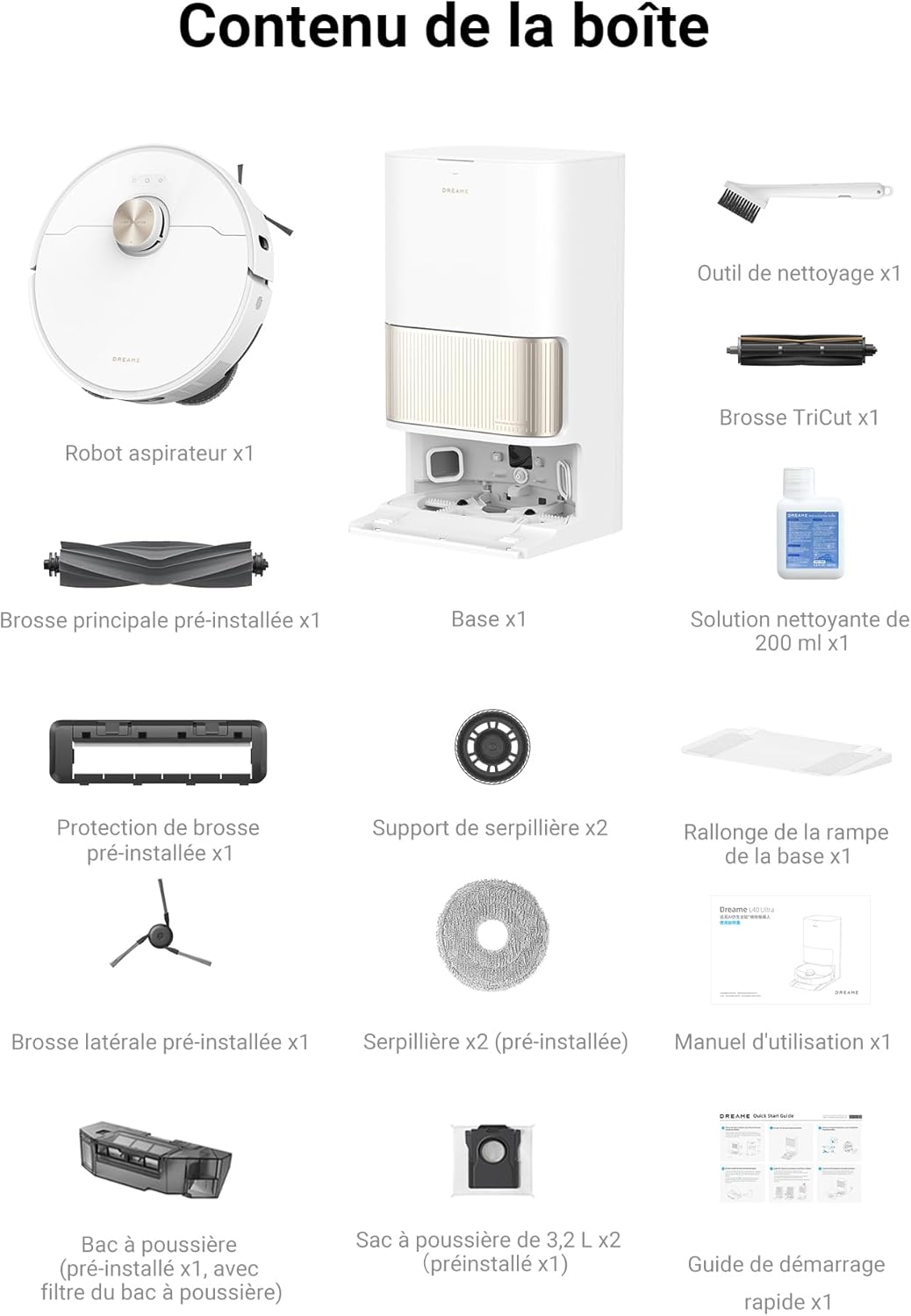 DREAME L40 Ultra Robot Aspirateur Laveur avec Serpillière Amovible et relevable, Brosse latérale Extensible et relevable