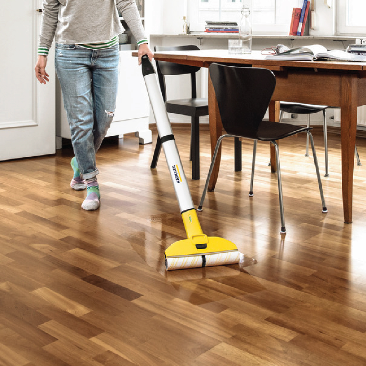 🏠 متعددة الاستخدامات – مناسبة لكل الأرضيات الصلبة مثل الباركيه، اللامينيت، PVC، البلاط والفينيل، مع وقت جفاف سريع لا يتجاوز دقيقتين.
