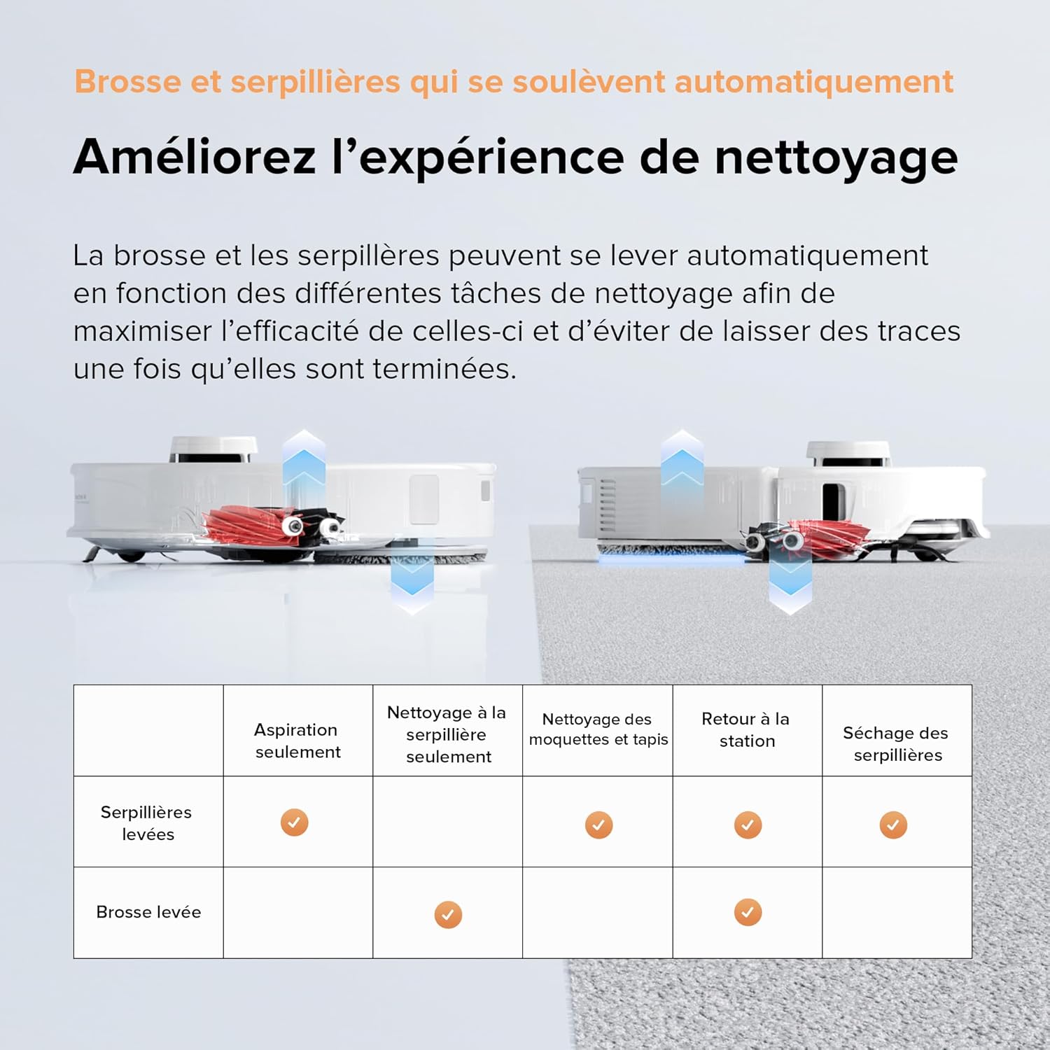💨 شفط قوي 10,000Pa + رفع أوتوماتيكي للممسحة