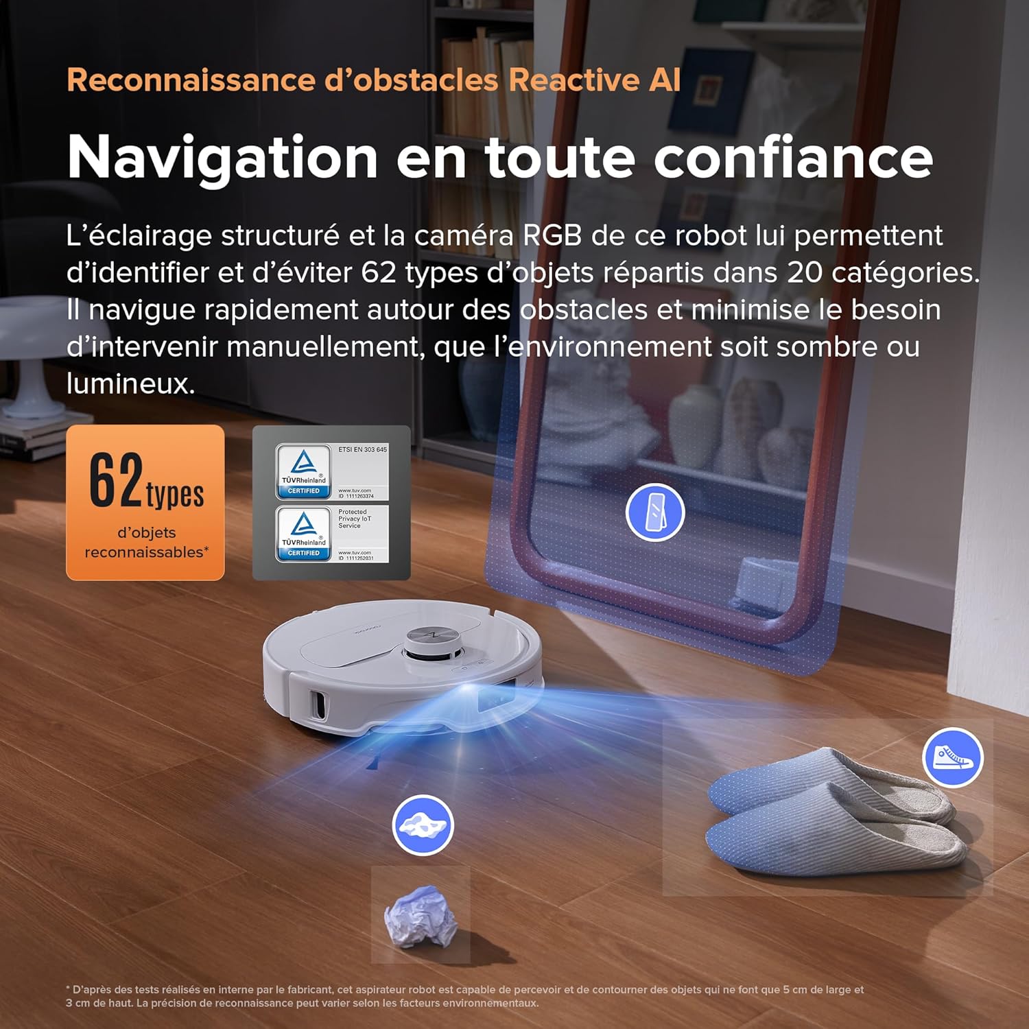 ✅ يرفع الممسحة تلقائيًا 10 مم عند اكتشاف السجاد لمنع التبلل.