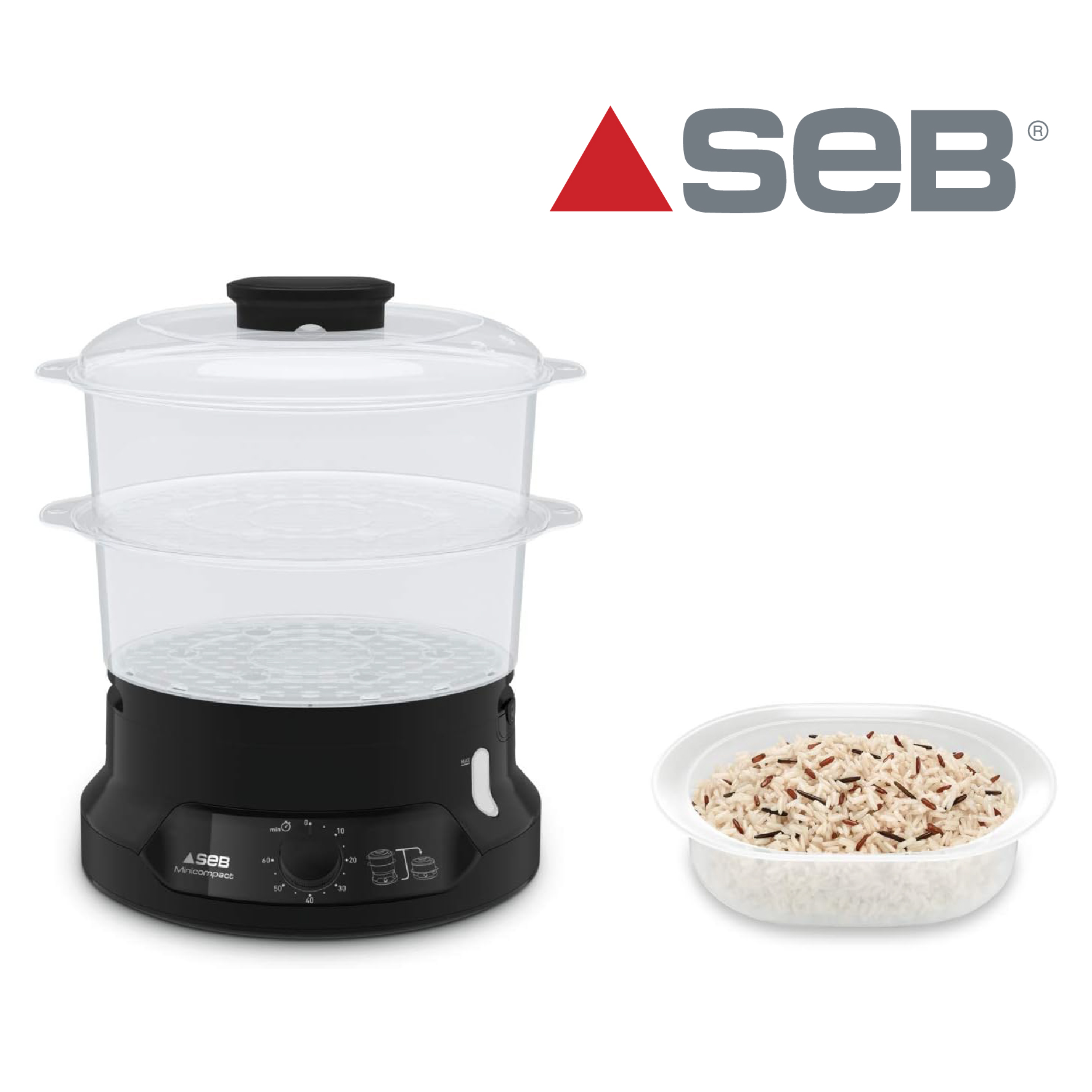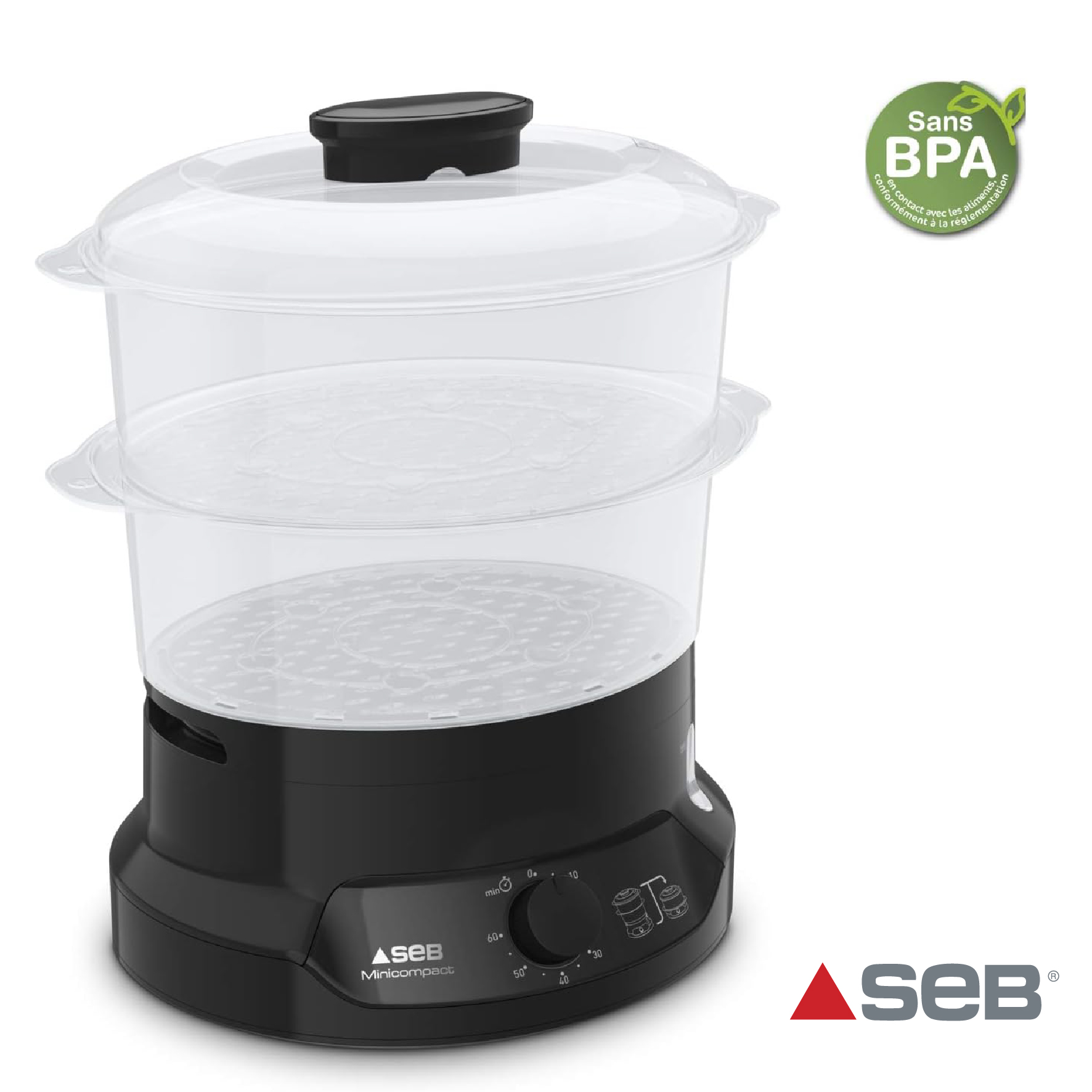 Seb Minicompact Cuiseur vapeur, Cuisson saine, 6 L, 800 W, 2 bols empilables, Bac à riz et céréales, Minuteur 60 min, Arrêt automatique, Niveau d'eau visible, Facile à ranger VC139800 1 16400 د.ج