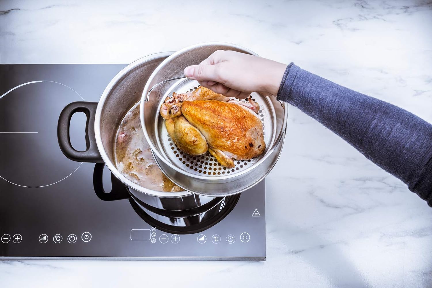 🔹 مؤقت ذكي يبدأ تلقائيًا عند الوصول لدرجة الحرارة المثالية، وينبهك عند انتهاء الطهي.