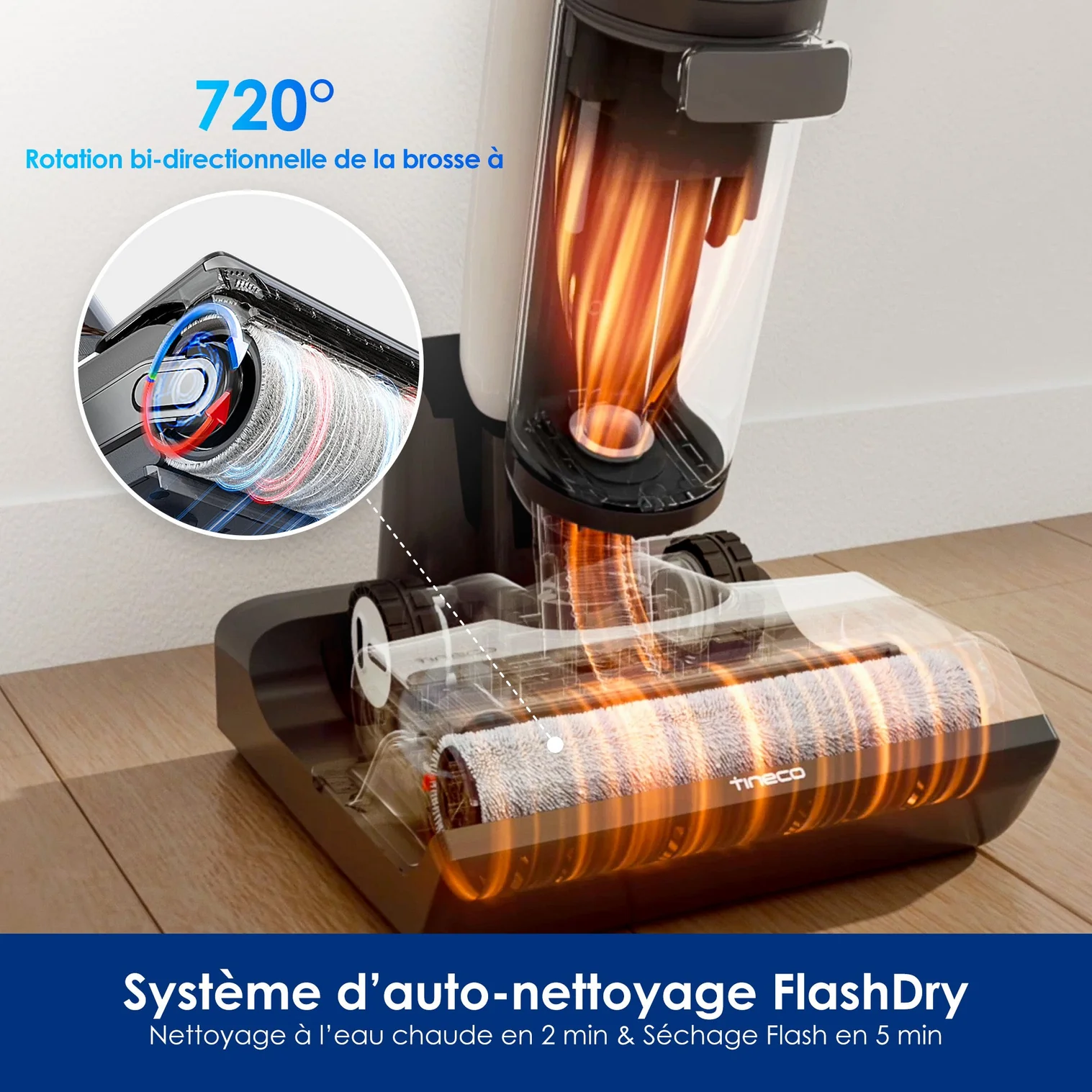 PureCyclone filtration de 8 étaps, Flashdry à 70°C en 5 min, Lampe LED frontale de la brosse, Brosse ZeroTange, Nettoyeur multifonction 5 en 1
