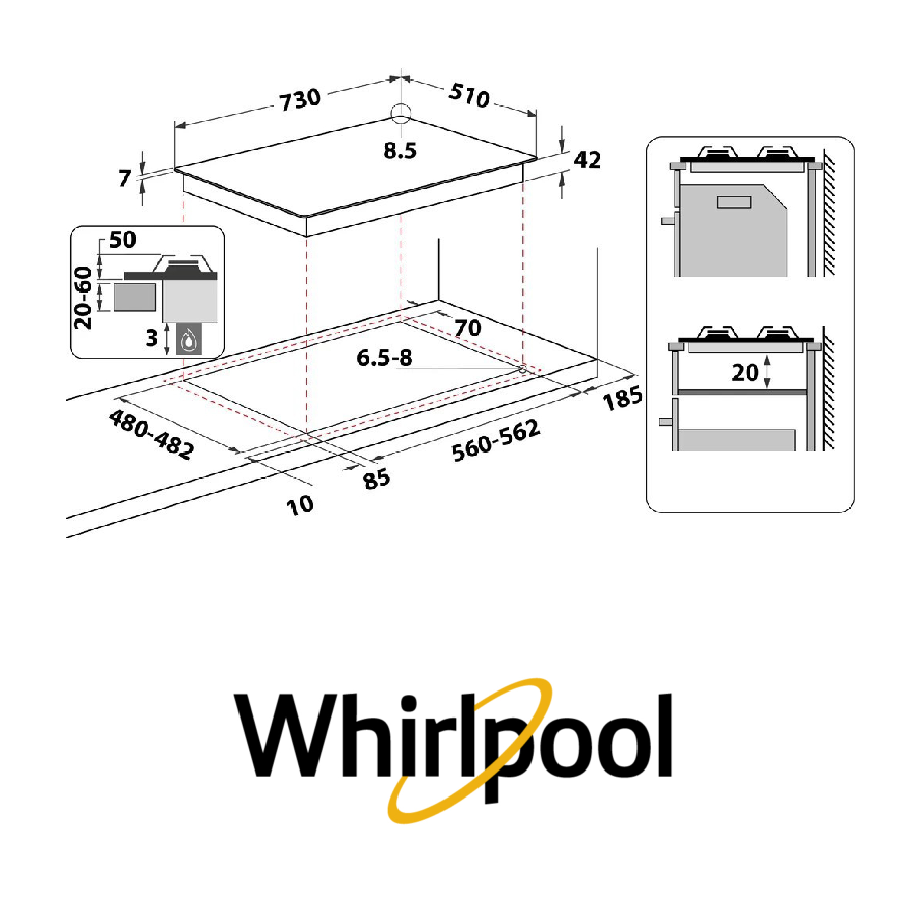 | Whirlpool Table de Cuisson Plaque Gaz 5 Feux 75cm GMWL 728/IXL FR | 1 78900 د.ج |